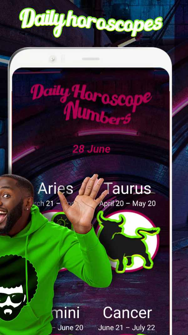 You can generate 6 lucky lotto numbers and a bonus number. Take a look at Lucky’s lotto strategies for picking the perfect combo. Use a numerology calculator to generate lucky numbers from your name. Check your Daily Lucky numbers based on your horoscope, the app also has advice on which numbers to avoid.