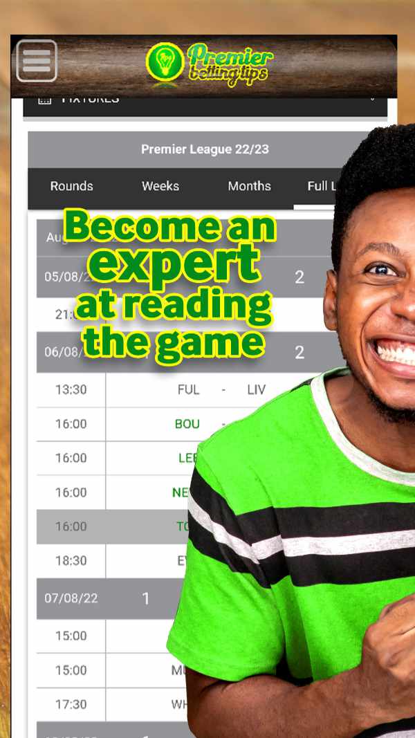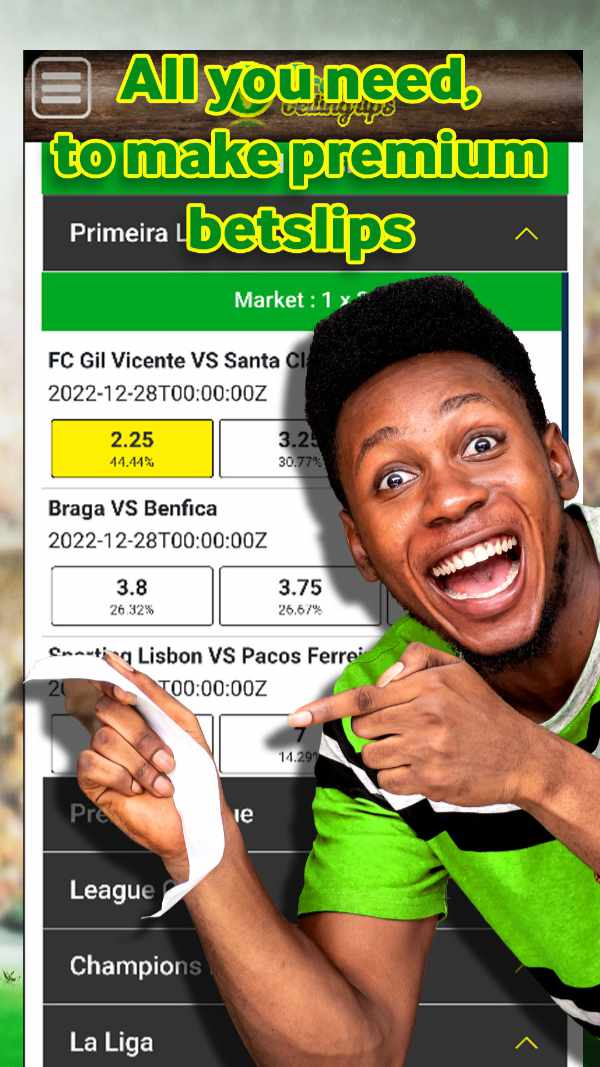 Become an expert at the game and turn your betting slips into premium works of winning odds! This app offers you everything you need to reach expert status from live game scores, league tables, head-to-head stats and many more. You never have to leave our platform throughout your betslip making journey!